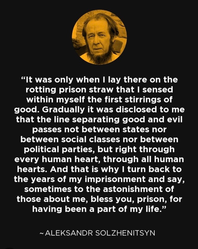 Solzhenitsyn was not merely a writer, he was a witness; man who passed through the furnace of the Gulag, and instead of turning bitter, emerged luminous. His was the path of purification through suffering; the crucible that burns away the illusions of ideology and pride until only truth remains. He discovered that the line dividing good and evil does not run between nations or classes but through every human heart.
